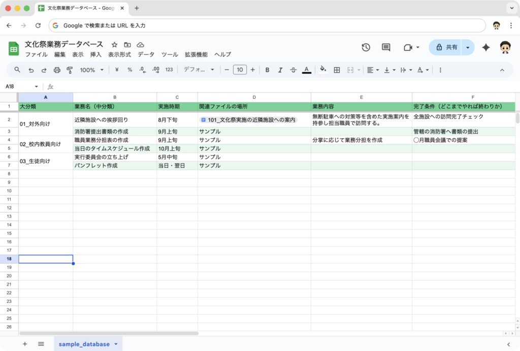 まずは「文化祭」「体育祭」「入試資料」「探究学習」など、自分の受け持つプロジェクトを一つデータベース化してみましょう。